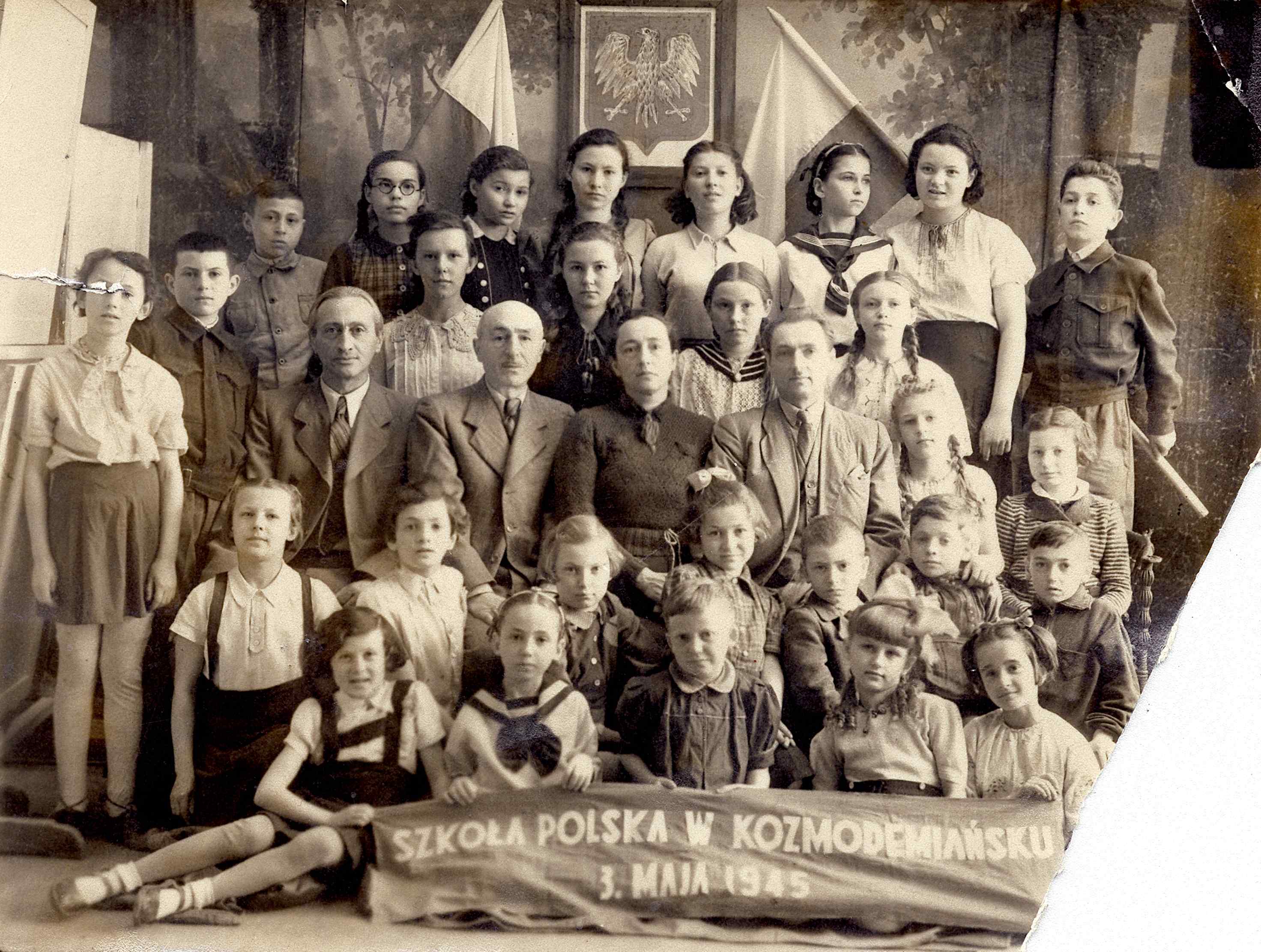 Mrs. Leibel with her pupils in the Polish gymnasium in Koz'modem'yansk