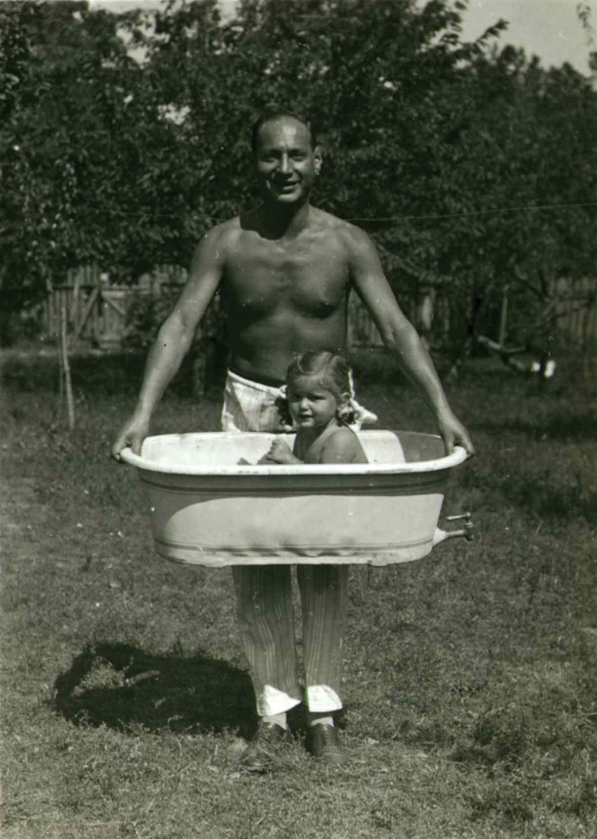 "Eszter, my daughter, knew everything about the family, and about the war, but I didn’t raise her as a Jew at all. In fact, she is baptized, because my mother-in-law’s family demanded it. Cs. is not religious; he hates priests. After the child was born I started to give English lessons while walking the baby. I pushed her in her pram, and two children came with me and I taught them English as we walked. I didn’t want to send her to a day nursery. I took her to my mother’s and I gave English lessons there. The child stood in the baby-walker, she played."