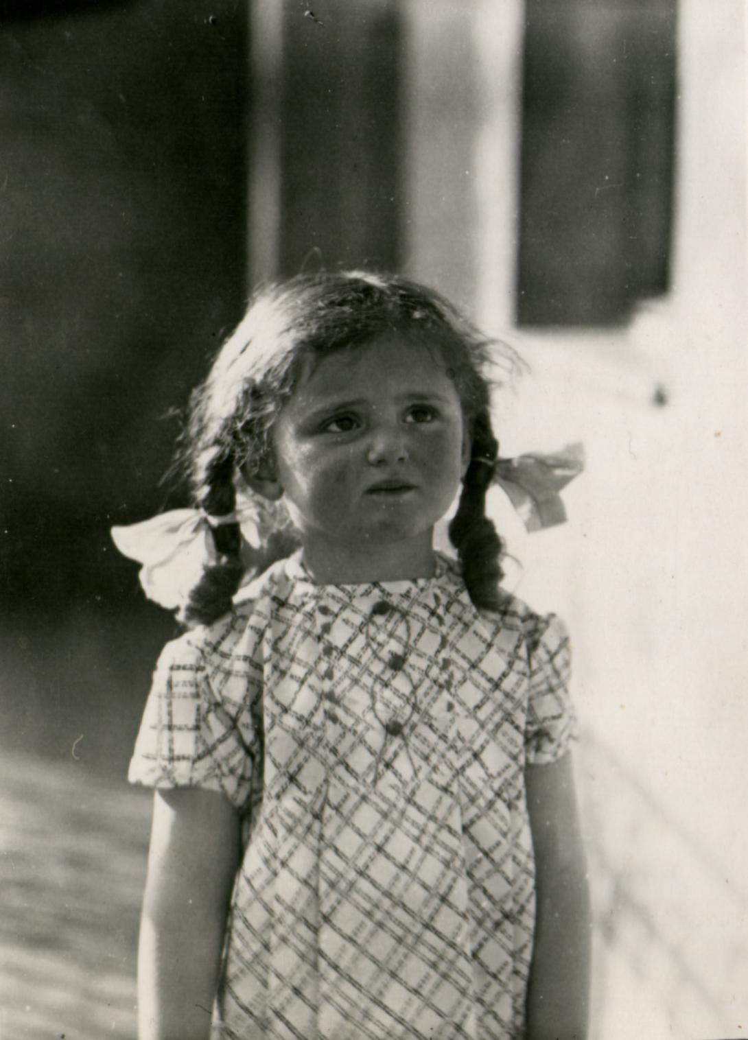 "My brother Gabor was born in 1926 and I was born in 1934. We lived in a three room apartment in a three-story apartment house with one open side and the sun shone on the courtyard all day long. When we were little children, we learned to walk there, splashed there in a little pot my mother put out for us, and we did our homework there when we were older. Down in the courtyard, all the children played together. That was great fun. We were the only Jews in the house, but it was no problem."